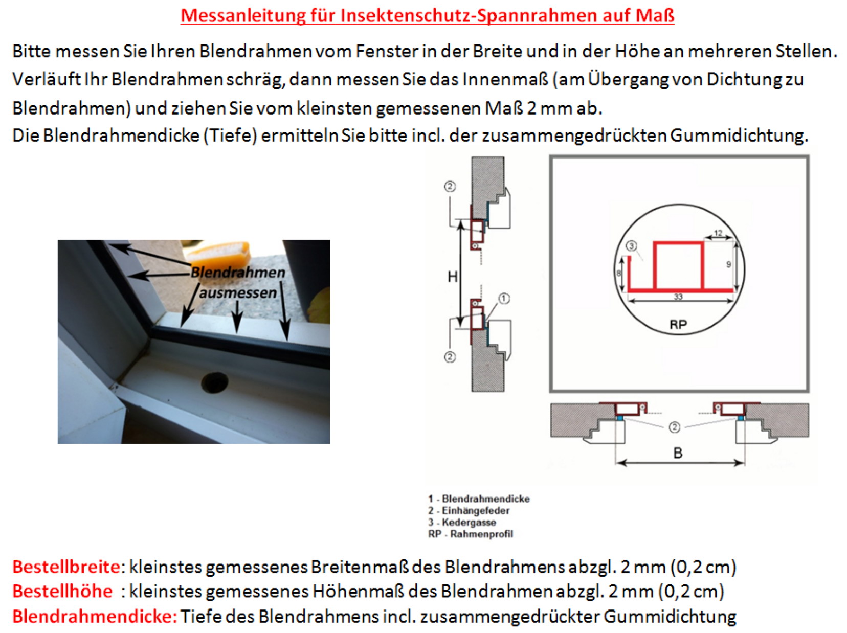 Bestellmaße für Insektenschutzspannrahmen vom Sonnenschutz-Handel Drechsel ermitteln
